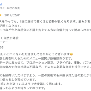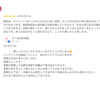 その都度、身体の状態を丁寧にみてくださるので自分でも気づかないことも的確に教えていただけます。痛くないのに施術の前後で身体の軽さが全く違います。 【さく自然形体院】 いつもご来院い...